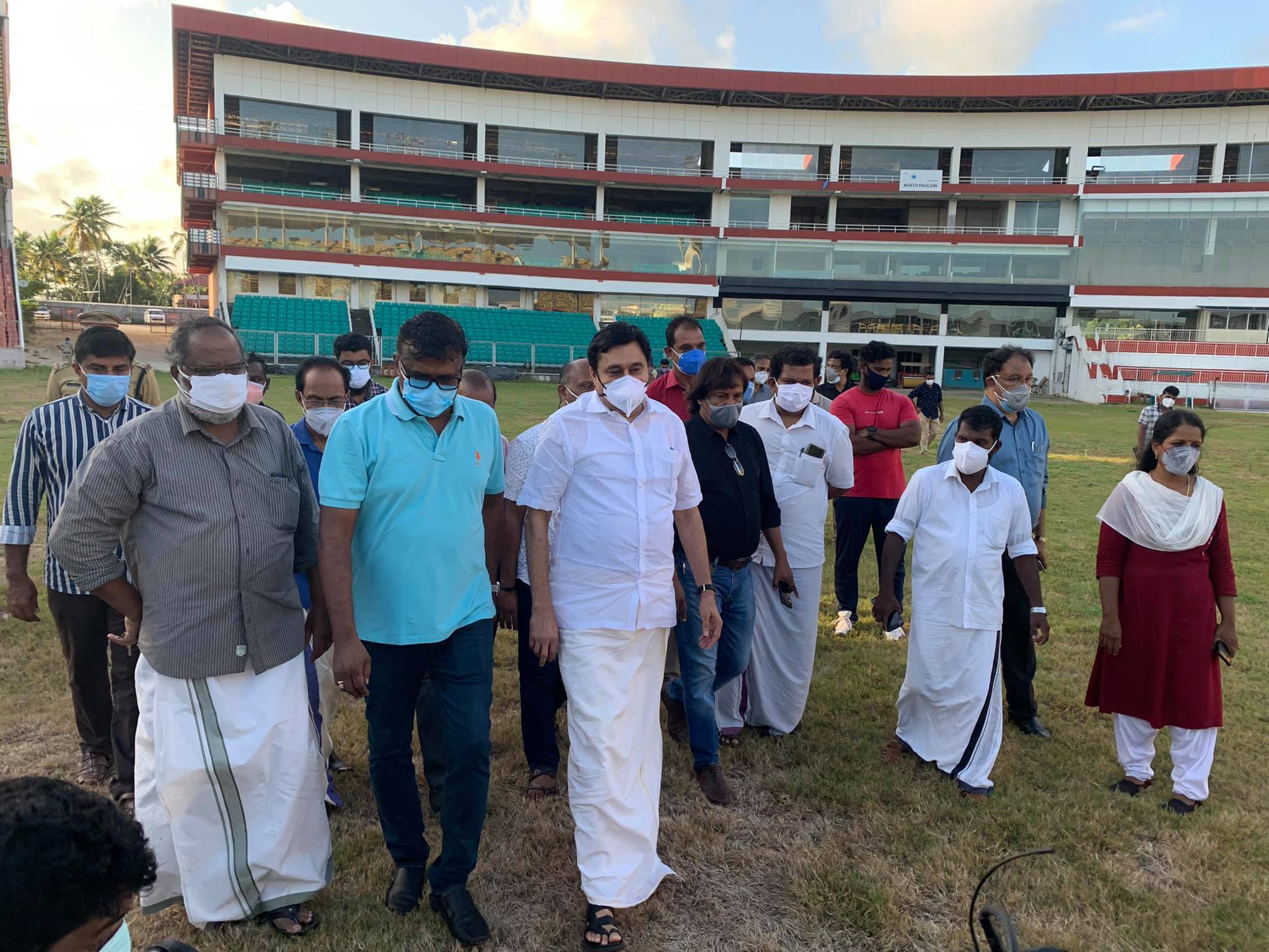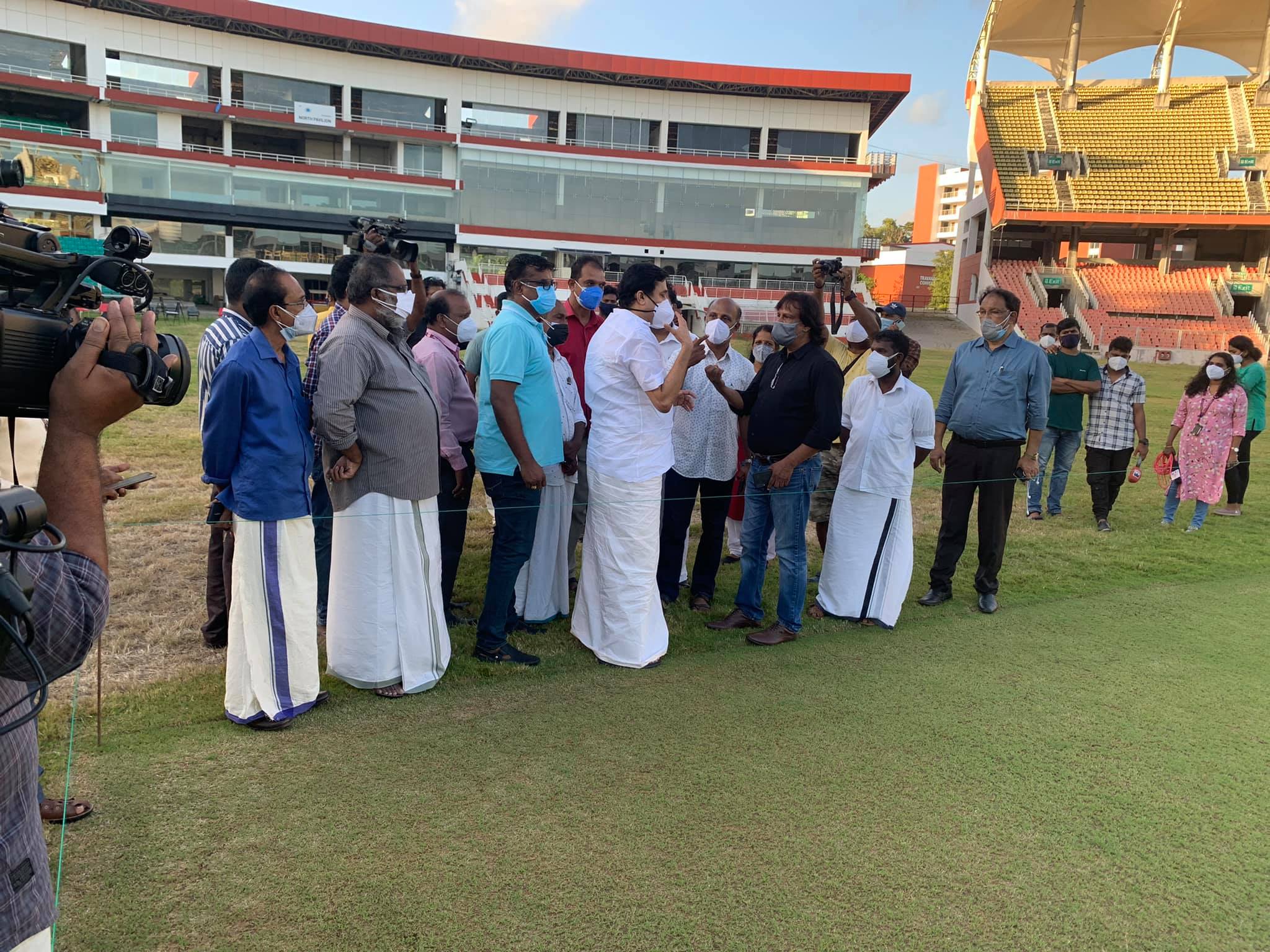 Sri Sajan K Varghese President – KCA, Adv Sreejith V Nair Secretary – KCA, Sri Vinod S Kumar Secretary -TDCA, Sri Jeromic George IAS Sports Director-Government of Kerala also accompanied the Minister.