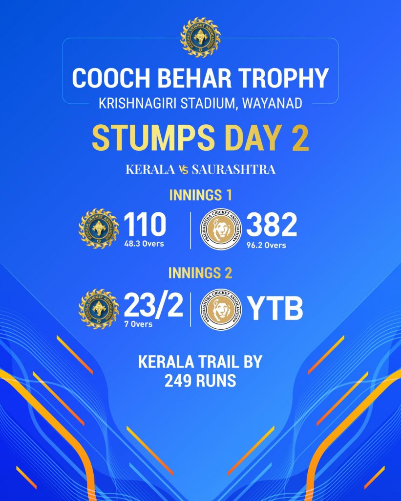 Cooch Behar Trophy: Kerala vs Saurashtra at KCA Cricket Stadium, Wayanad