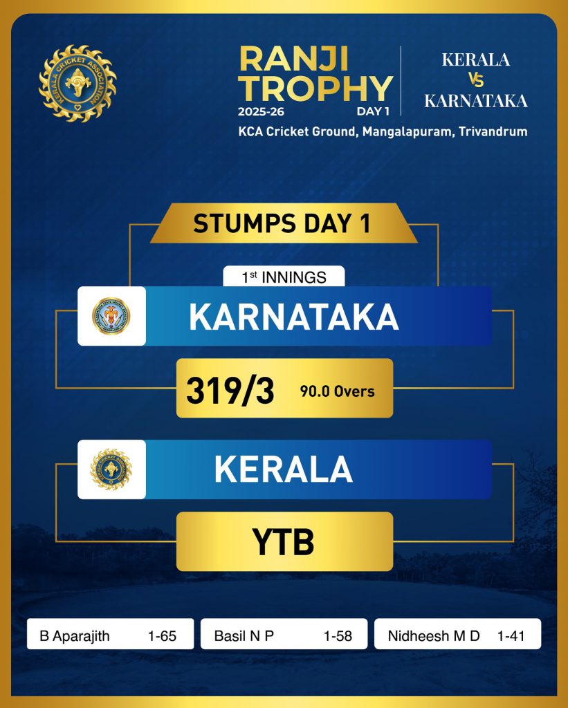 Ranji Trophy: Kerala vs Karnataka at KCA Cricket Ground, Mangalapuram