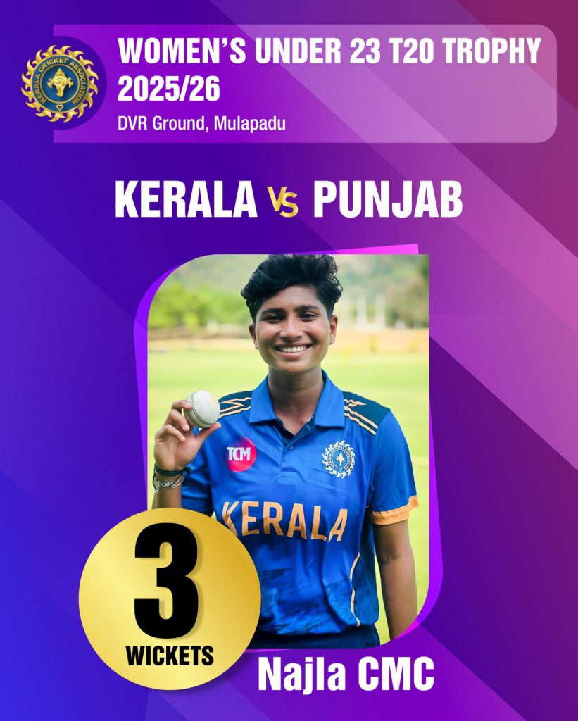 Kerala fall short in a tight finish in the Women’s U23 T20 Trophy, Najla CMC shines bright with a superb 3-wicket spell.