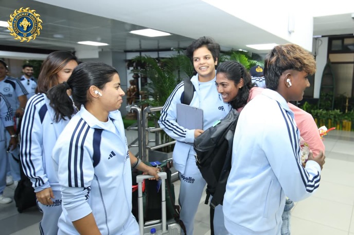 A grand welcome for the Women in Blue and Team Sri Lanka as they arrive in Thiruvananthapuram for the T20 showdown. With India already leading the series 2-0 from Vizag, the stage is set at Greenfield Stadium to seal the victory!