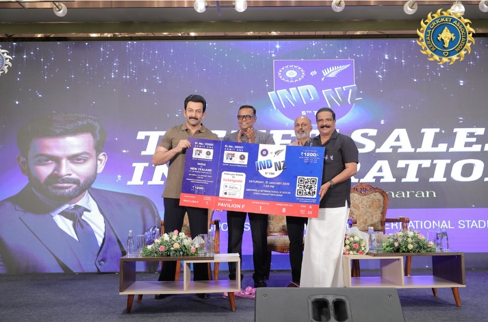 A ceremonial start to cricket fever ticket sales for IND vs NZ 5th T20I inaugurated in Thiruvananthapuram by Prithviraj Sukumaran