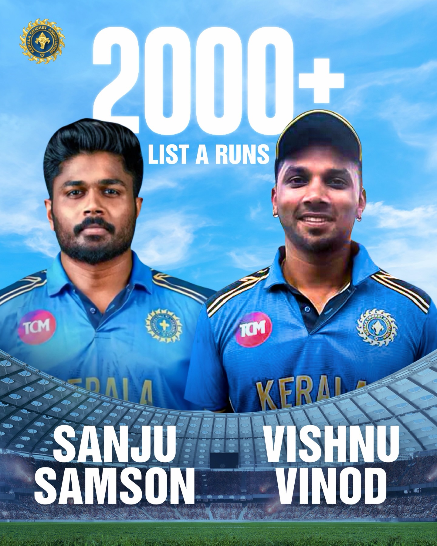 Sanju Samson and Vishnu Vinod cross 2000+ List A runs, reinforcing their importance in Kerala’s cricketing journey.
