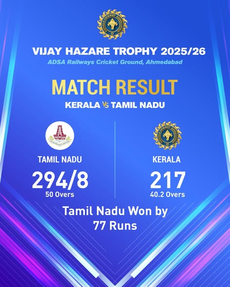 We went down by 77 runs against Tamil Nadu in the Vijay Hazare Trophy. Notable efforts from Rohan S Kunnummal 73(45) and Edhen Apple Tom (6-46) stood out for us despite the result.